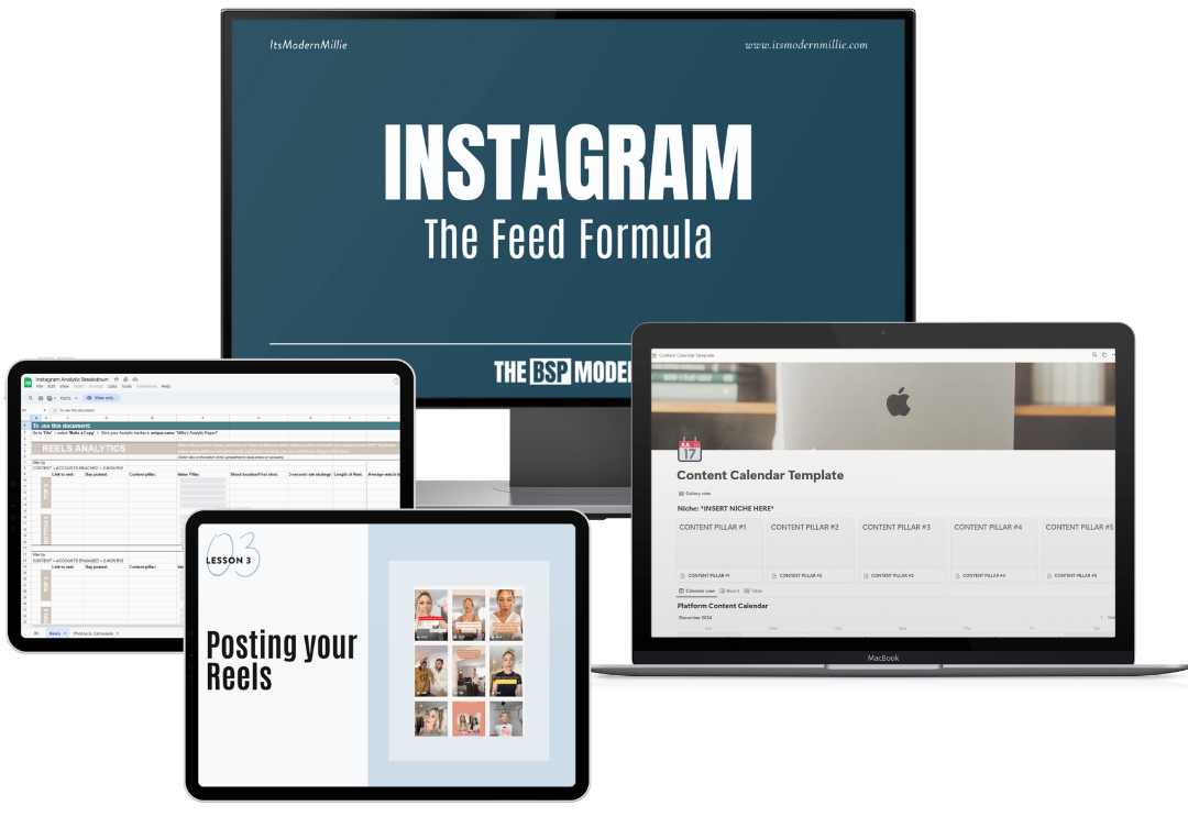 ✔ The Full Feed Formula System: 21+ step-by-step lessons to help you grow your Instagram with a clear content strategy and a consistent posting rhythm that actually gets results ($1,297 value).